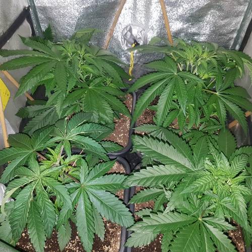 На пятой неделе рост кустиков достиг отметки в 25 сантиметров. Появились первые признаки предцвета, что означало скорую смену светового цикла. Растихи без проблем восстановились после топпинга и разница в размерах практически нивелировалась. Основные показатели оставались без изменений, как и схема питания. Расстояние от лампы до растишек было увеличено до 35 сантиметров.