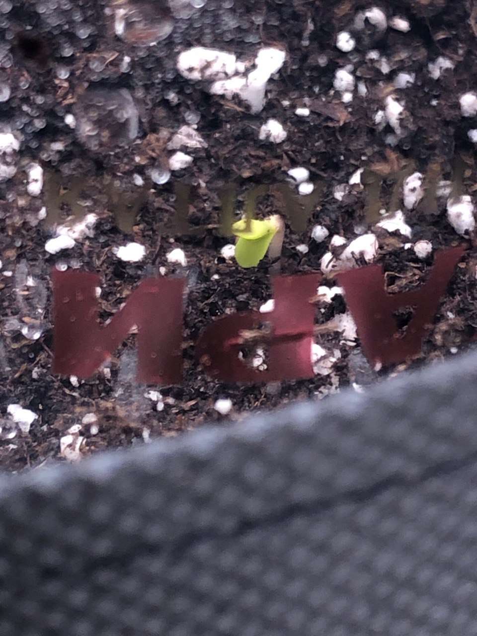 12-го числа, поняв, что терять уже нечего, я вооружился ножом и начал откапывать, очень аккуратно, как минер, миллиметр за миллиметром почвы привели меня к... ростку. Я внезапно его обнаружил примерно в полусантиметре от поверхности. Убрал лишнюю землю, так, чтобы росток видел свет и воздух, и водрузил стакан обратно в гроубокс. Причем вылез росток у меня сразу без каски из земли, потреля где-то по дороге к поверхности. Ну да, не рассчитал я глубину лунки, хоть казалось, что полфаланги не так уж и много...