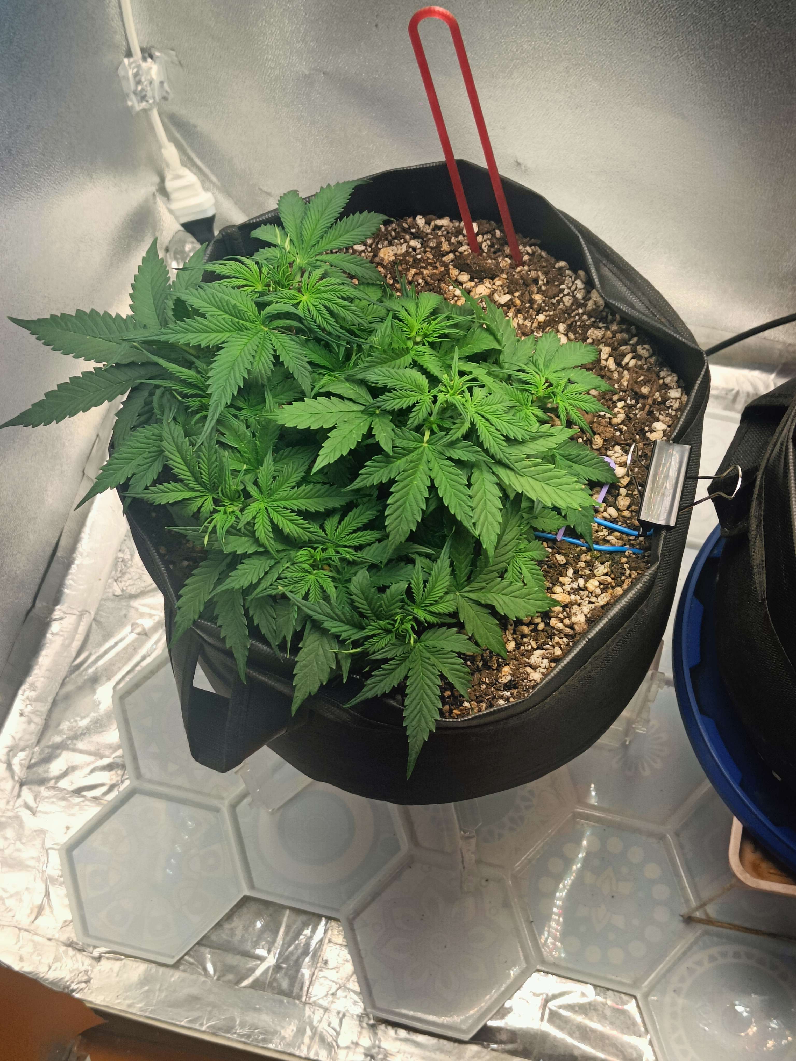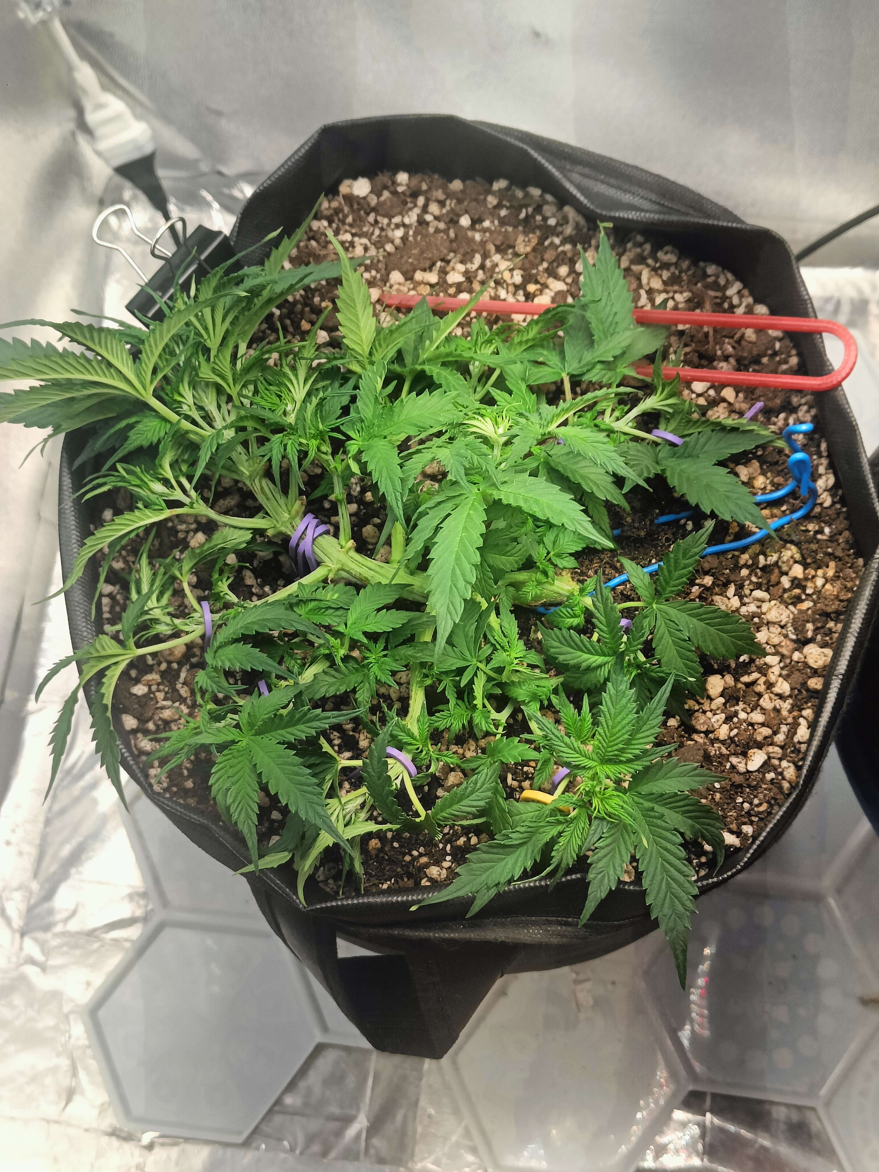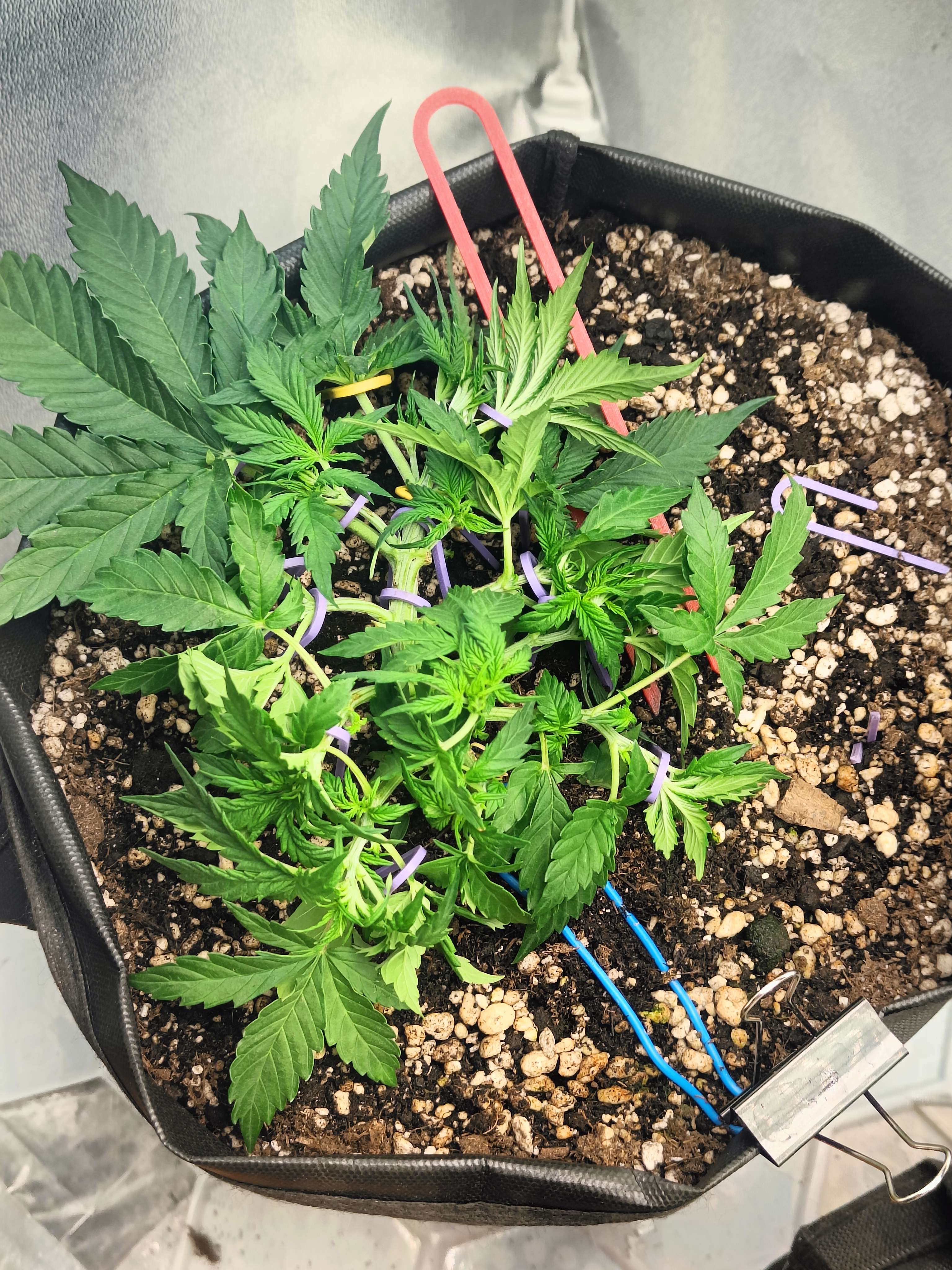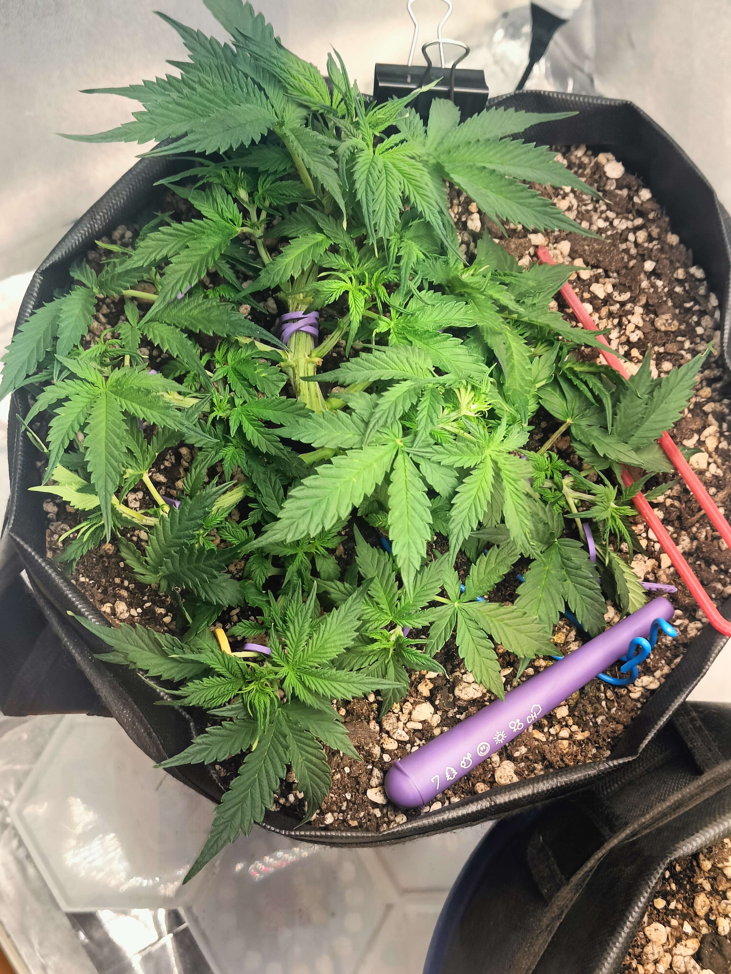 привет бро как будто деф фосфора намечается ну и в целом как будто слегка голодает, замеряй пш почвы и корректируй в случае необходимости. Азот на веге нужен его тоже побольше, ветки хорошие