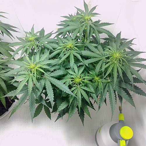 С пятой недели развития кустик полноценно зацвел. Гровер опустил лампу на расстояние 25 сантиметров до макушки и включил вентиляцию на максимум, тем самым понизив уровень влажности до 40%. Схема питания изменилась, но компоненты остались прежними.