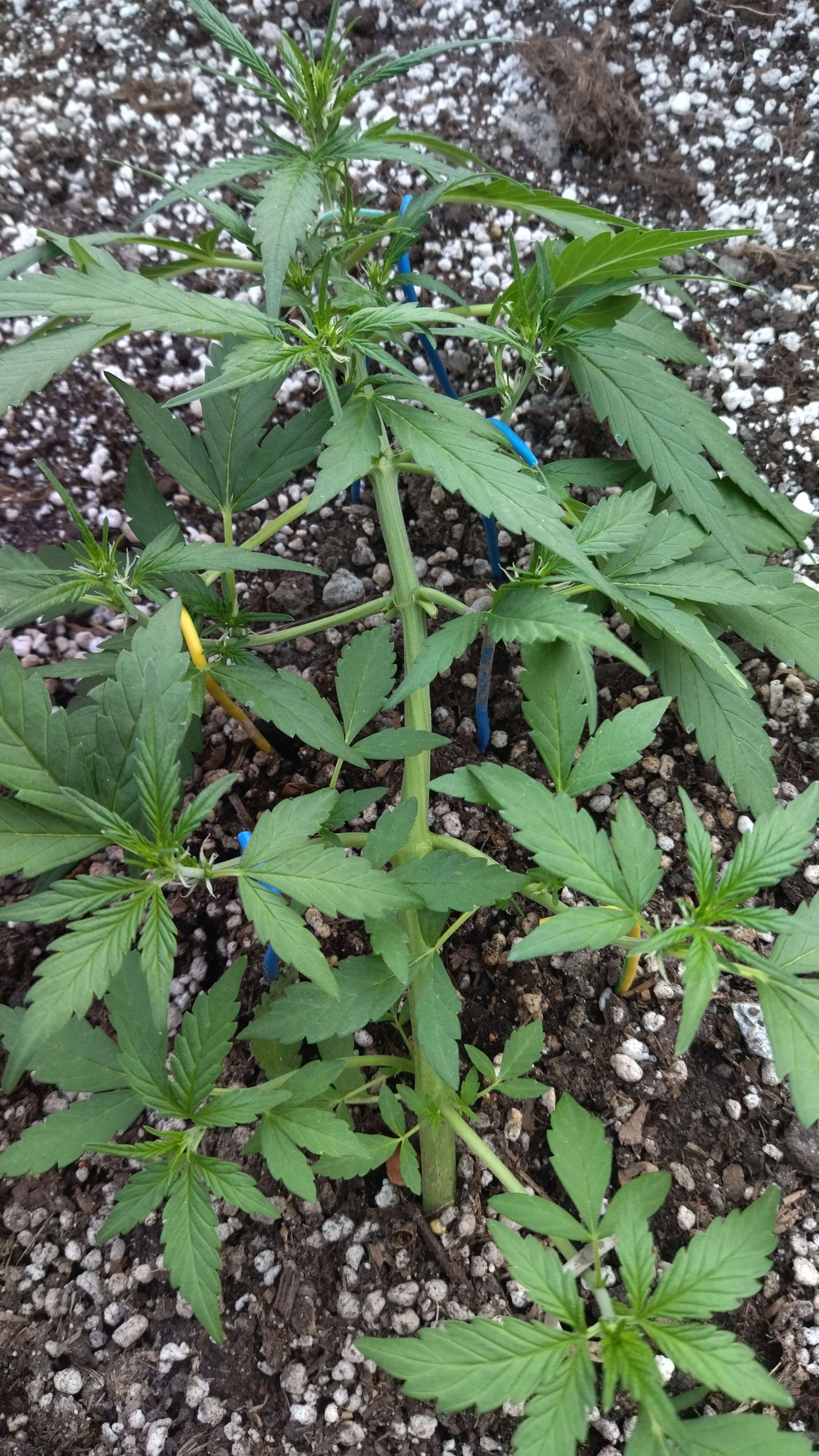 Начало шестой недели. Рост есть, этажи набирают Гориллы. Удобрения заряжены в грунте, вроде работают, полив чистой водой, каждый день по 1.5 литра. Жара на улице, тормозят, по-любому, растишкт в росте.
