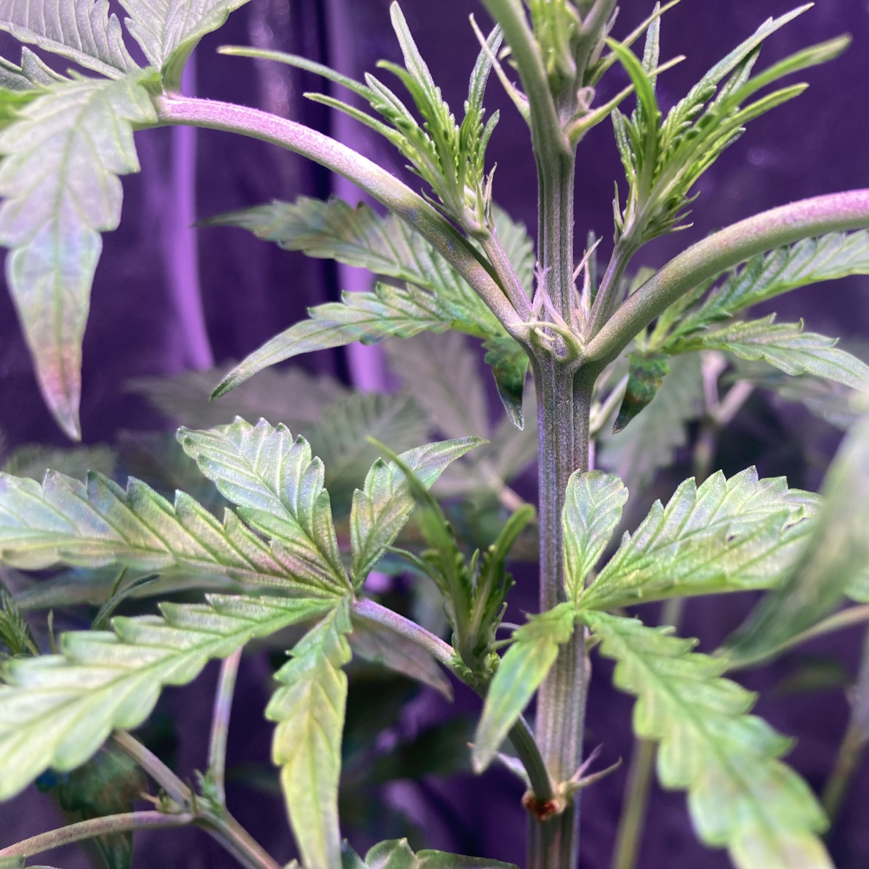 Наметился нетипичный фенотип: заметно уступает в размере остальным, отставила его в сторонку. Он развивается довольно неказисто, странной формы появляются листы. Будь это первая попытка, возможно бы смутилась и думала, что что-то делаю не так. Но больше похоже на случайный генный сбой - вероятностно неизбежное событие. Кроме Афганки, брала у Джоинт-Доктора Ниагару, Дип Форест, Лоурайдера и ДиСи Кьюр: они проявляли себя без нареканий, так что доверие к сидбанку сохраняю.