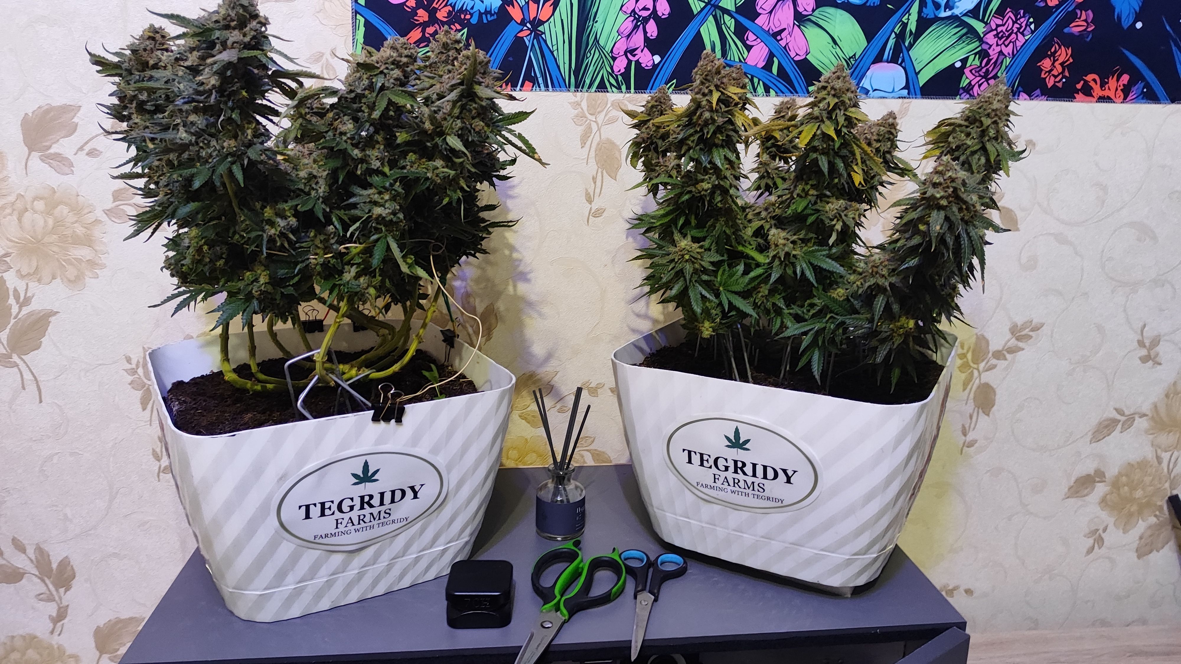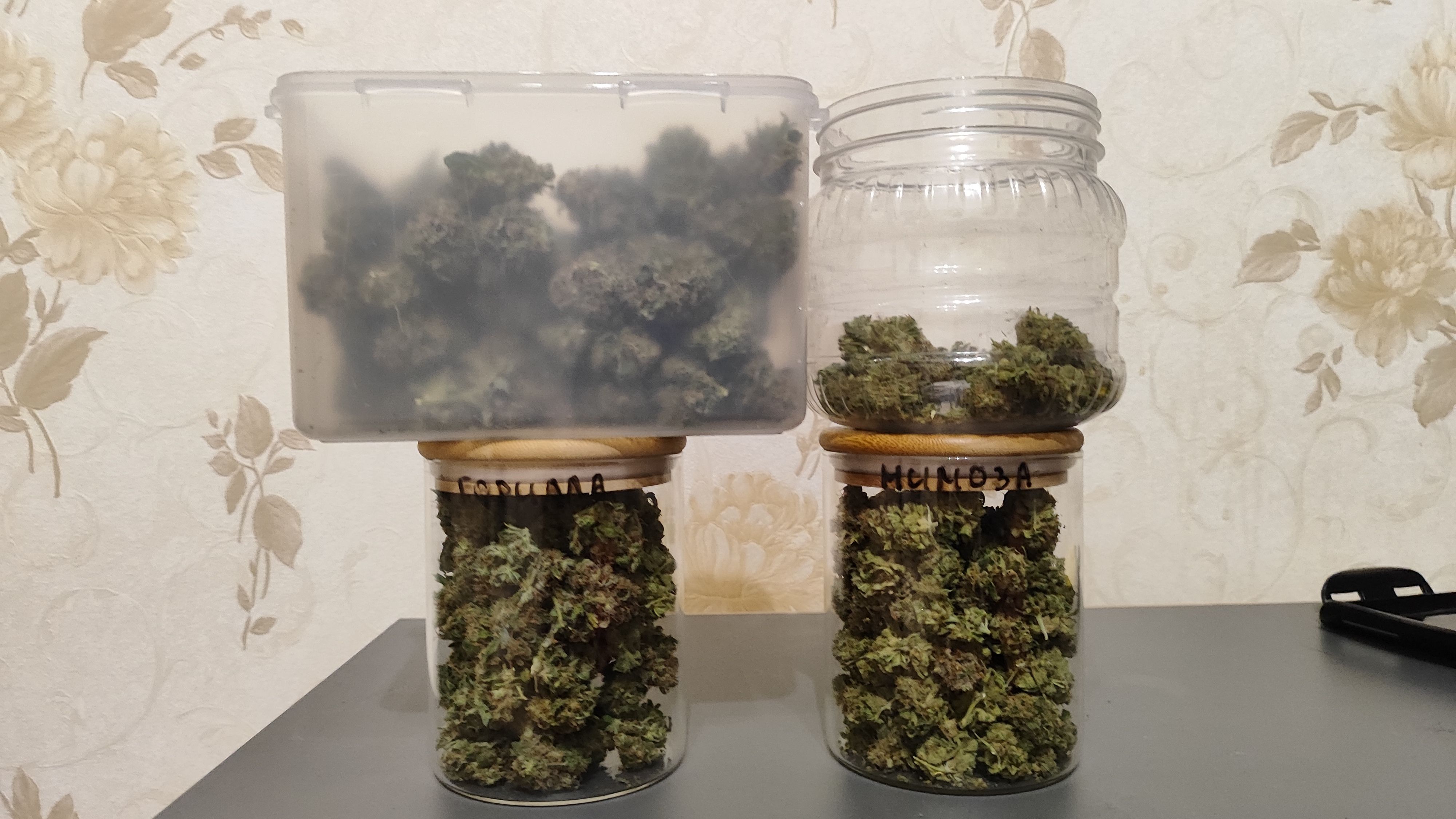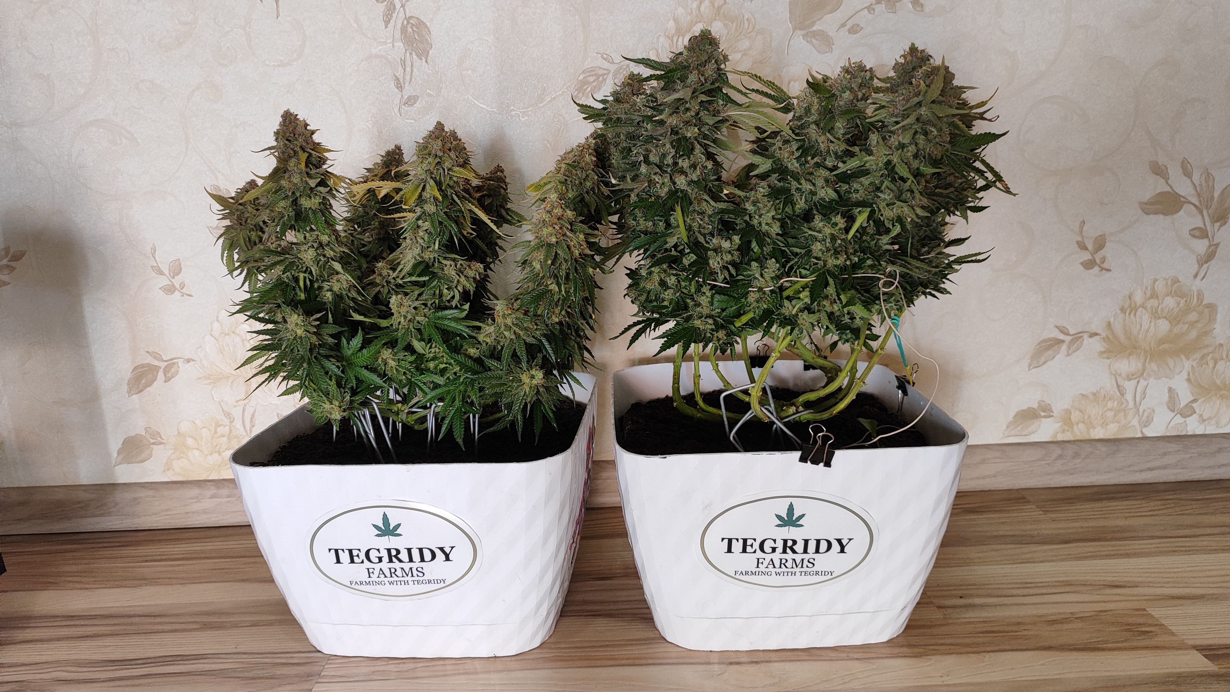 Пролил горшки кранухой, ph не ровнял литров по 20 на горшок. Последние недели не мог понизить влажность, была около 70%. Голодала около 3-4 дней, пару дней без света. 25 октября долгожданный харвест, 115 дней от каски и 70 дней цвета. По весу 700+г оттримленных сырых шишек. Сушка в боксе при температуре 24, влажность 40-50%.