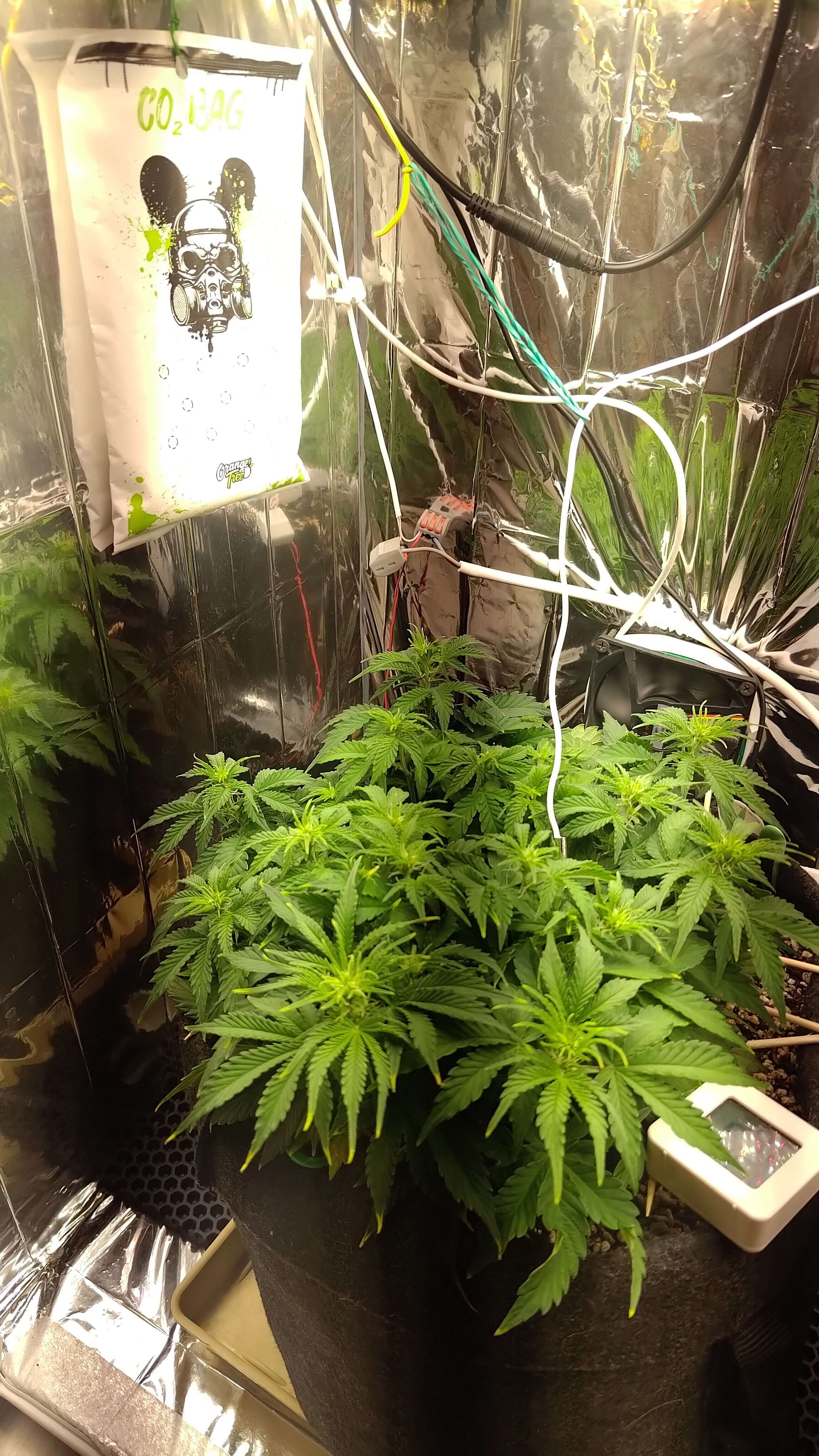 Изменения этим днём: повесил пакет с СО2, подкрутил диммер до ~80%, PPFD1000, температура пару часов уже держится 30, с дополнительным углекислым газом хороший показатель.