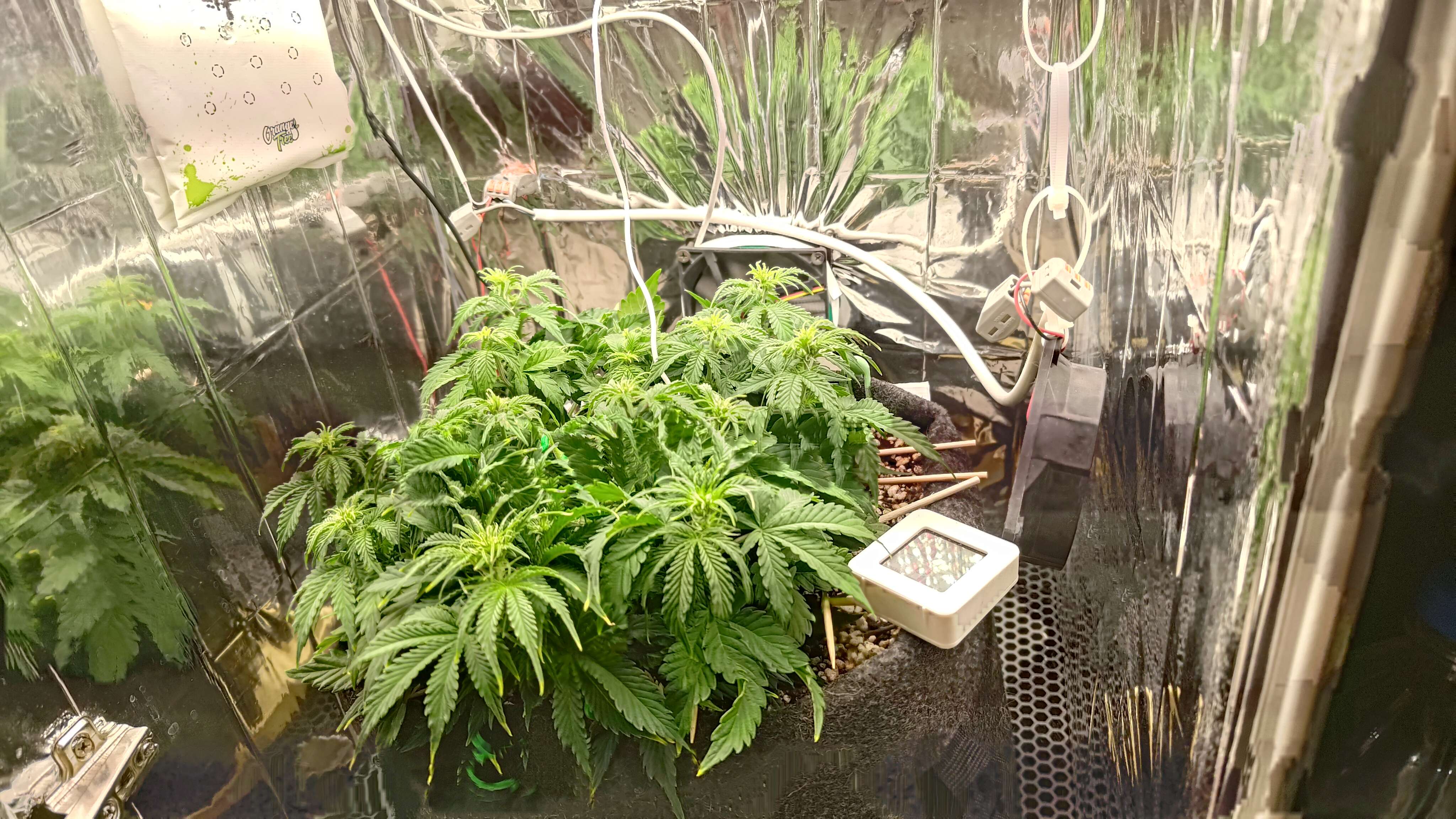 Когда мерял люксы случайно уронил телефон на кустик, вроде ничего критичного, но после этого откуда то из под листьев вылетела какая-то дрянь размером с рисинку, улетела из бокса, надеюсь она плохого ничего не наделала, вечером осмотрю внимательно куст. Всем пис, растем:loveu
