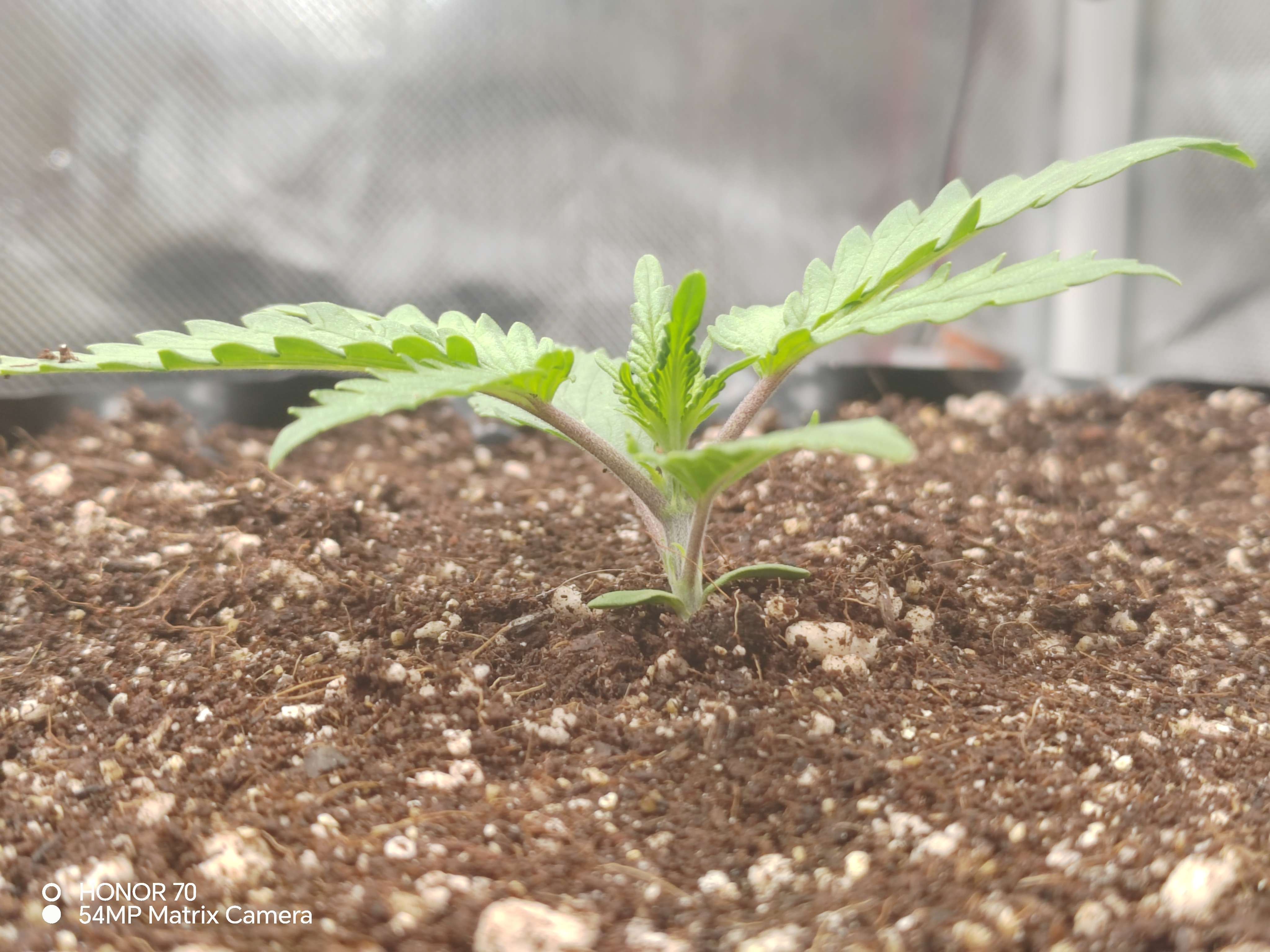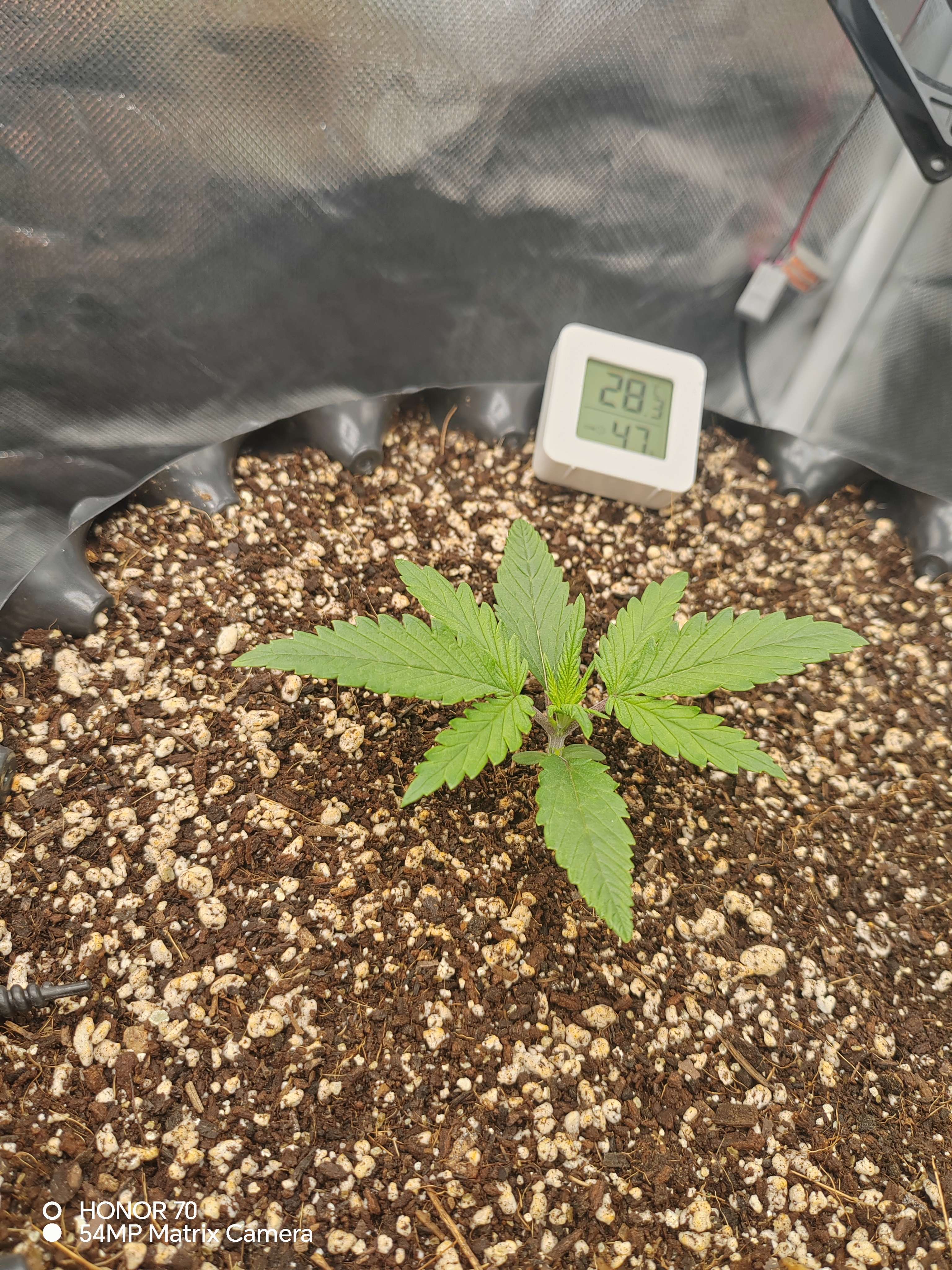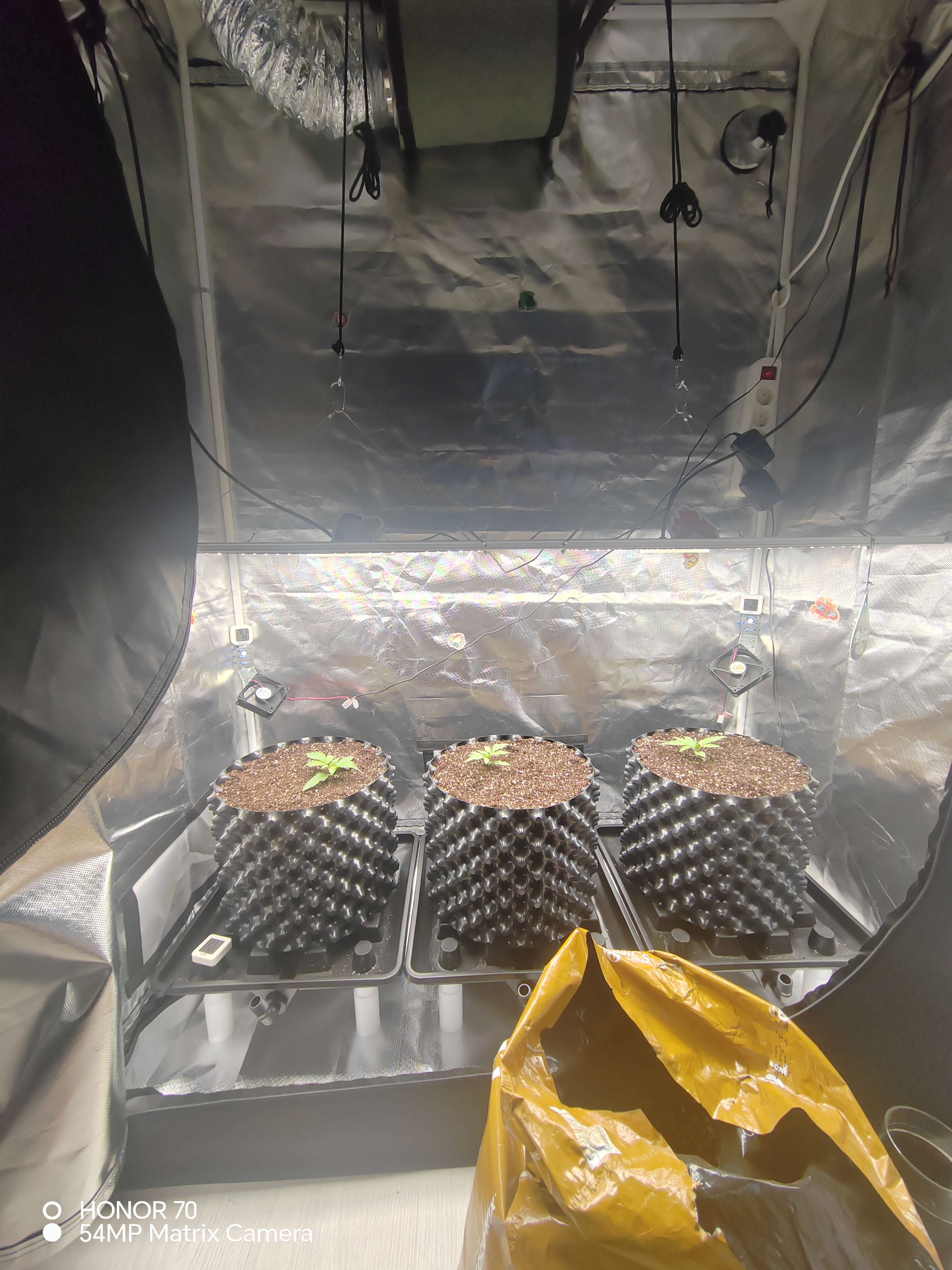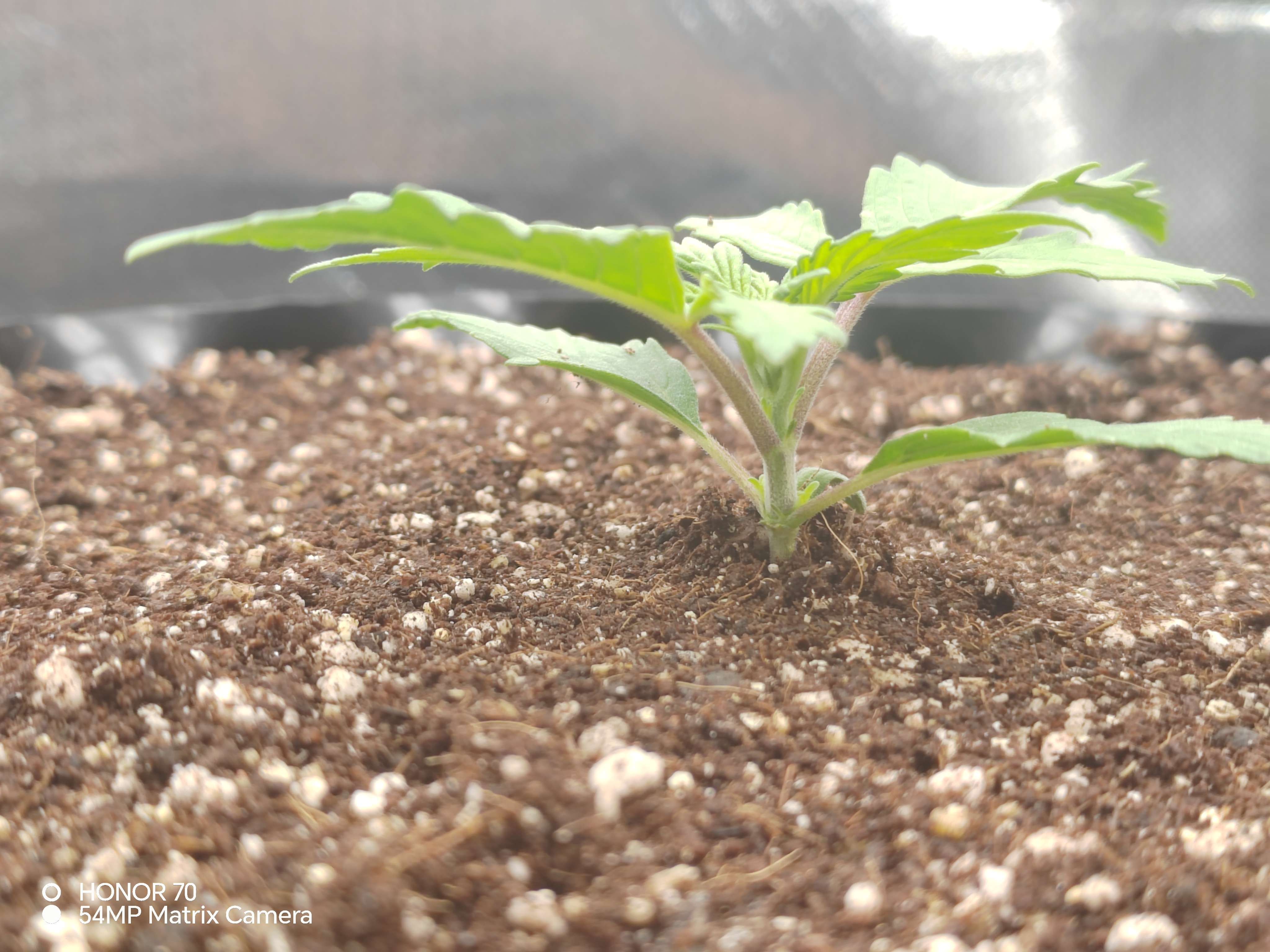 Начал проливать до выхода дренажа 20%+-.Навалил субстрата по семядоли, дабы укрепить ствол. Пока все идет штатно. Температура высокая 27-28°сбить не получается, уже отопление в доме отключил.... Кондей покупать не вариант пока, так что едем так... 🤷😎