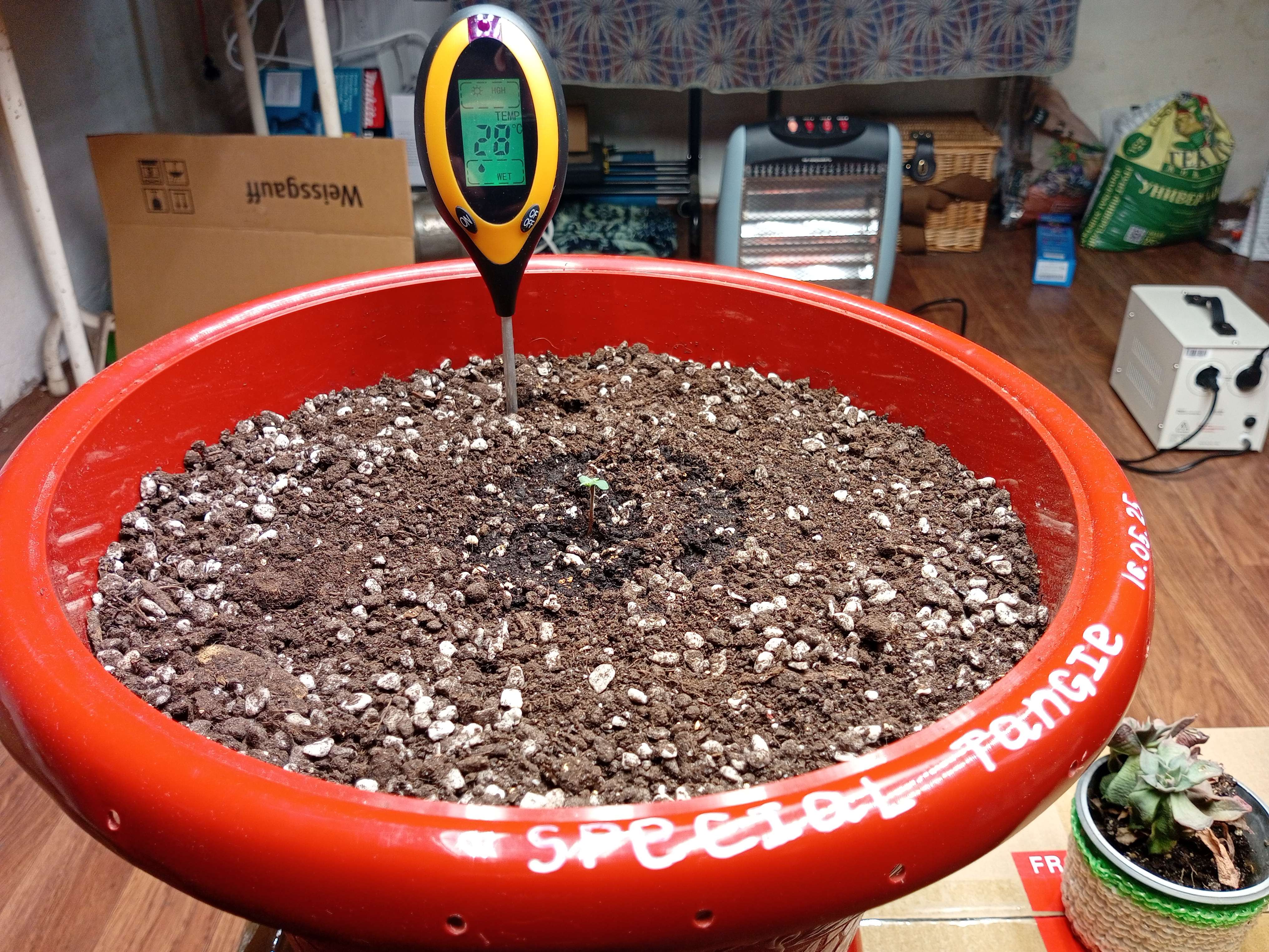 Палатка всё еще едет. Приедет до конца недели. Сейчас в мастерской растут подруги с чутка приоткрытым окном, чтобы был приток свежего влажного воздуха с улицы. Кварцевый обогреватель обеспечивает более или менее стабильную температуру.