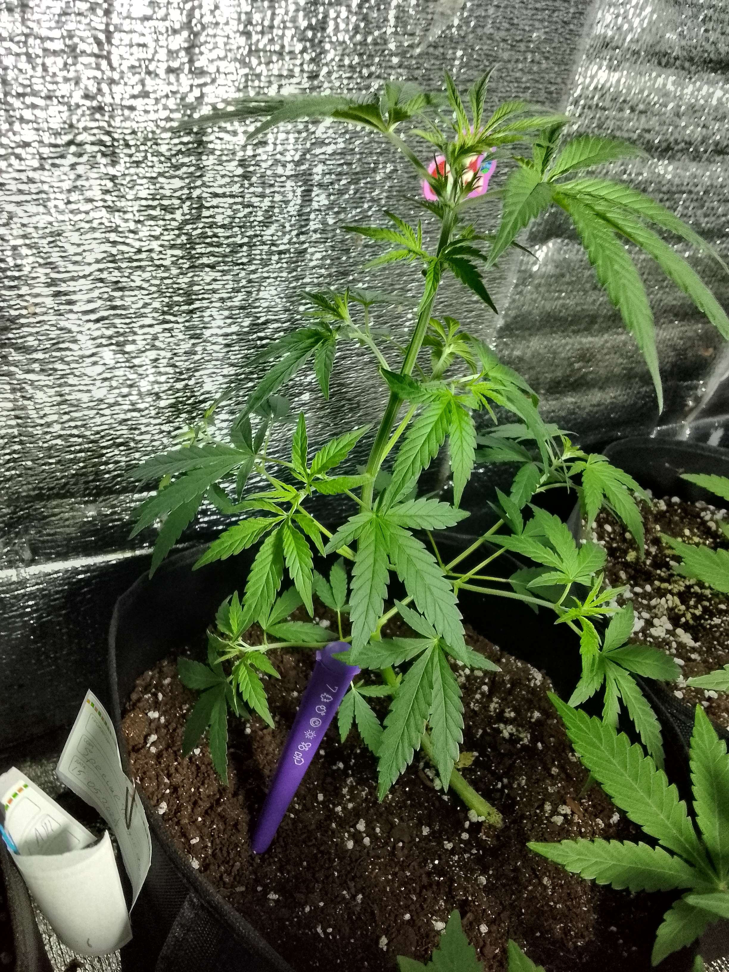 Обрезал листья лопухи, буду смотреть на поведение растихи. Ствол тонкий, что не характерно для сорта,чего-то не хватает, но не говорит. Полив чередую чистой водой и удобрениями на рост. По признакам трихом и шишек почему-то медленно идет появление. Веду дальнейшее наблюдение.