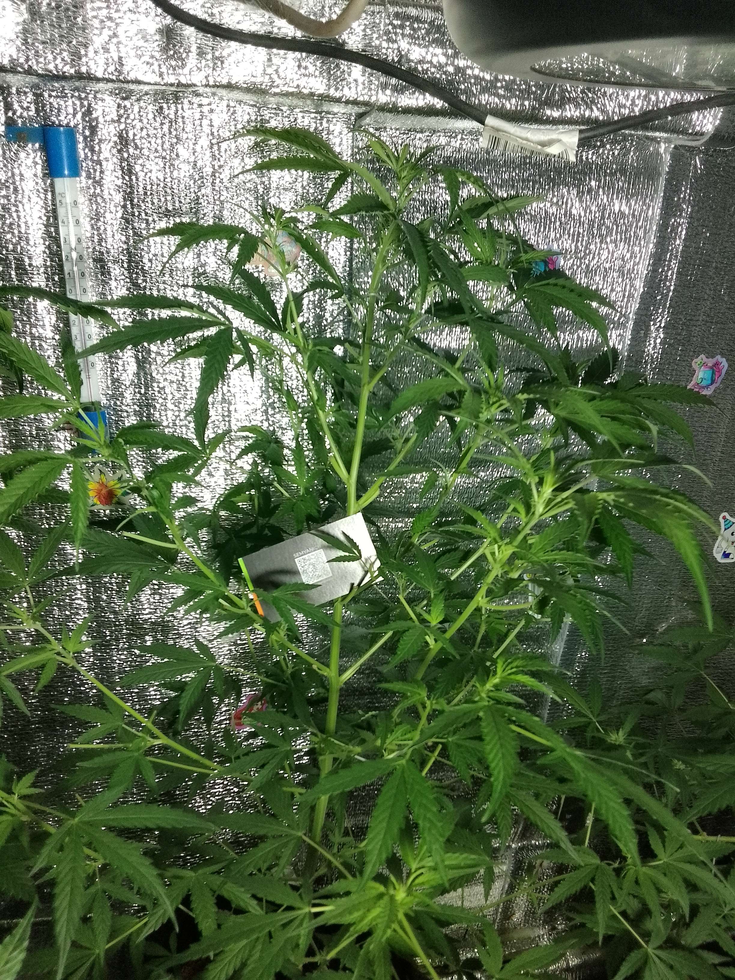 Всех приветствую на моем грове! На этой неделе полив удобрениями 2 раза на цветение, стараюсь, чтоб уже пошли проблески будущих цветов, вроде идут потихой. Так же сделал обрезку мешающих листьев, а то пышная растиха, хоть непонятно почему тонкие колы, нехватка только чего, всё выдаю даже без заявок и свет и удобрения). а так в целом можно сказать, что идет замедленная вегетация переходящая на цветение. Продолжу на следующей недели. Всем добра!