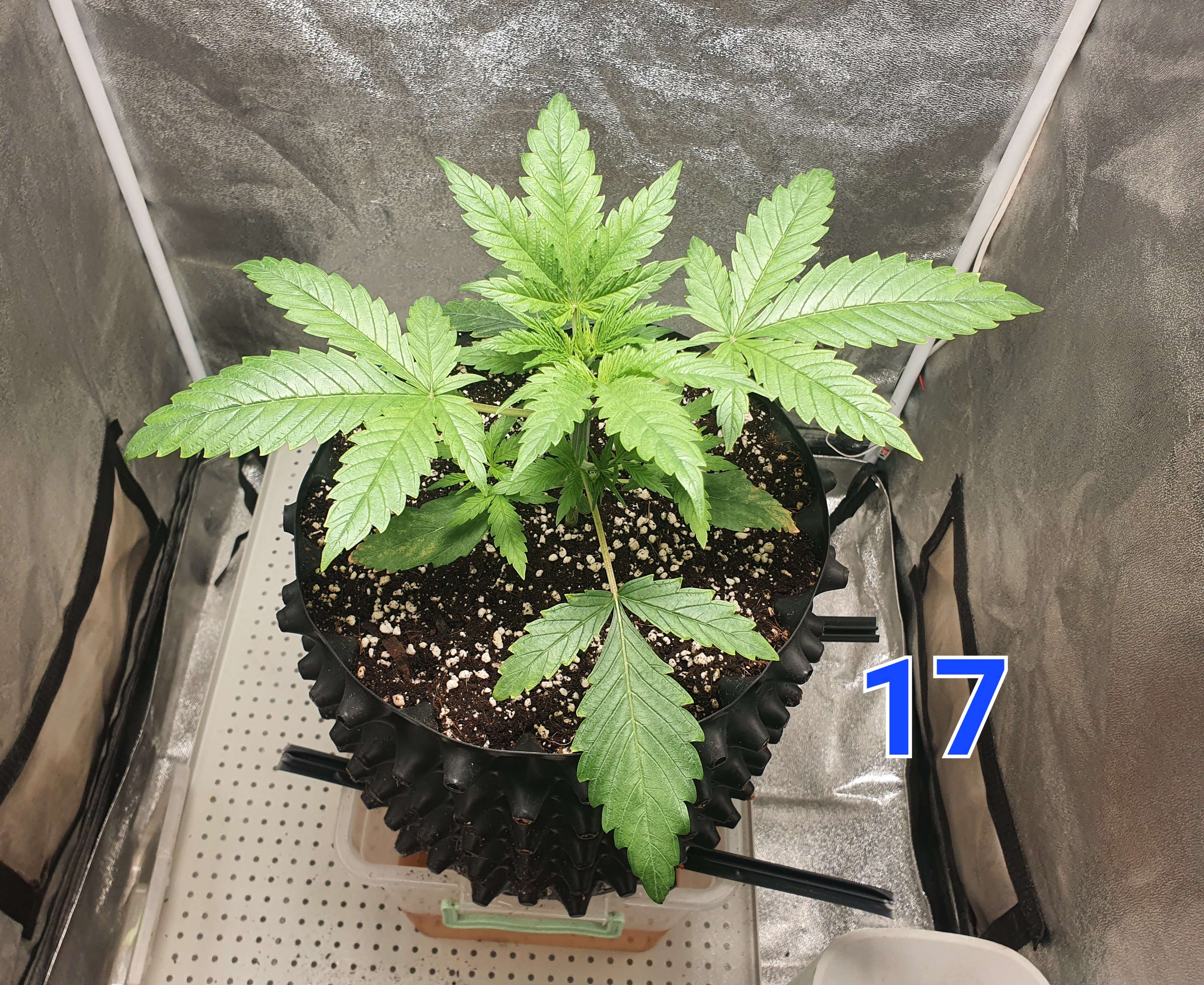 Выглядит просто восхитительно, так и должен выглядеть каннабис на 17 дне, никакого стресса- и вот какие темпы роста, у кого то третий этаж только набивается на этом этапе. Тут и тренировки можно делать, растишка то окрепла и уже может справиться со стрессом- ресурс есть, но совсем другое дело насиловать еще неокрепшую растишку- там и тормоза пойдут, так что тренировки самое главное знать когда применять. Одним словом браво
