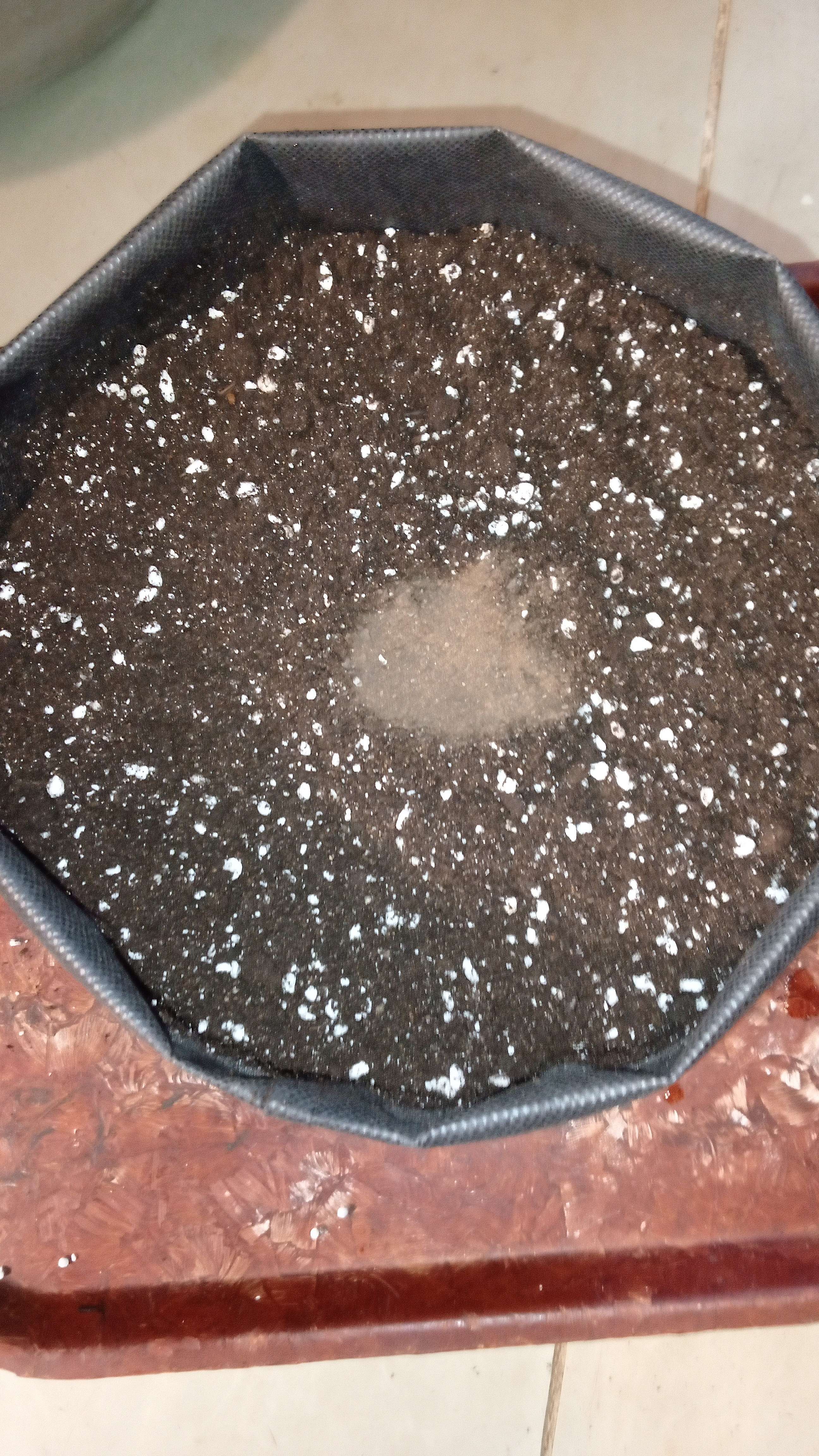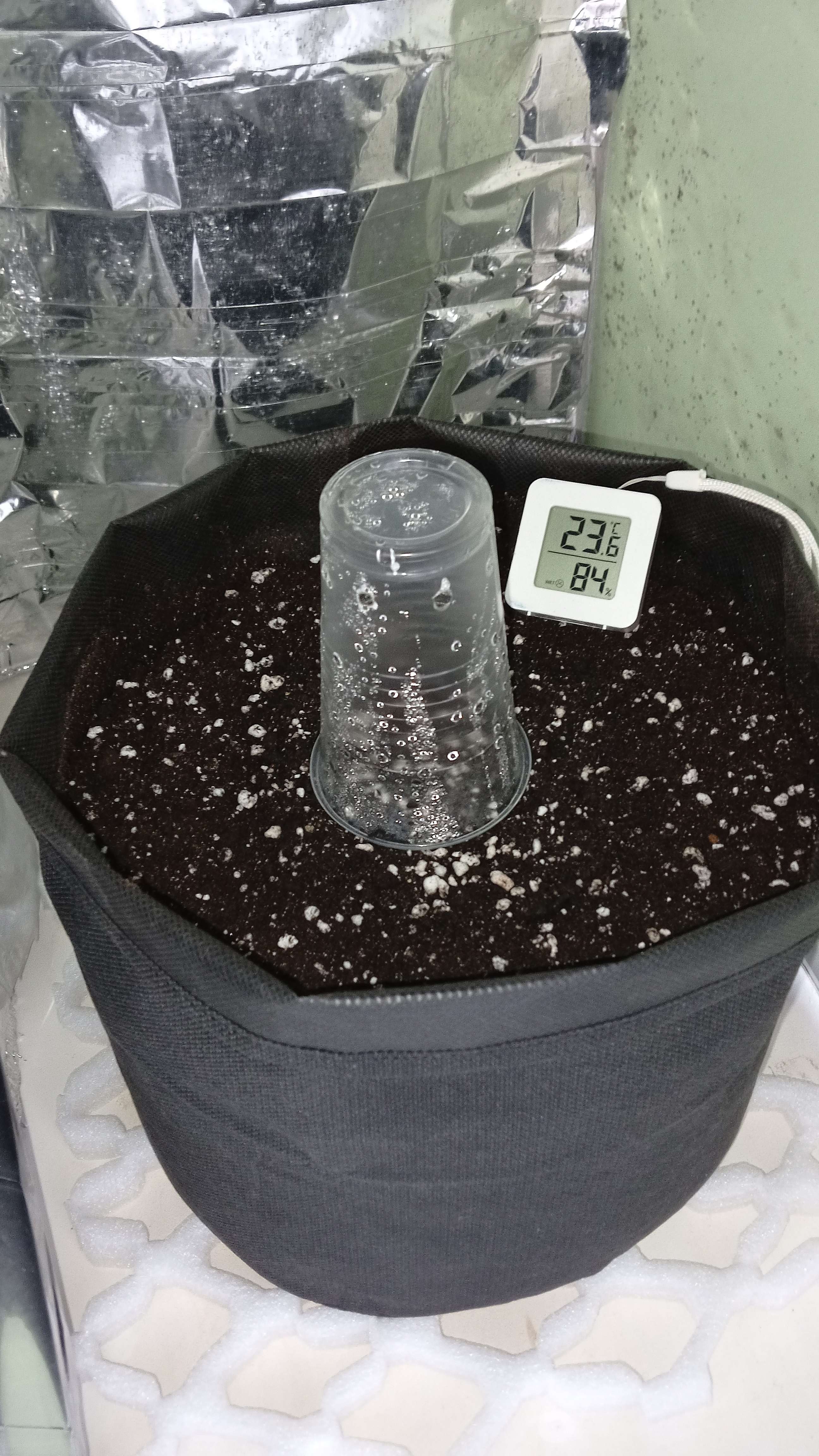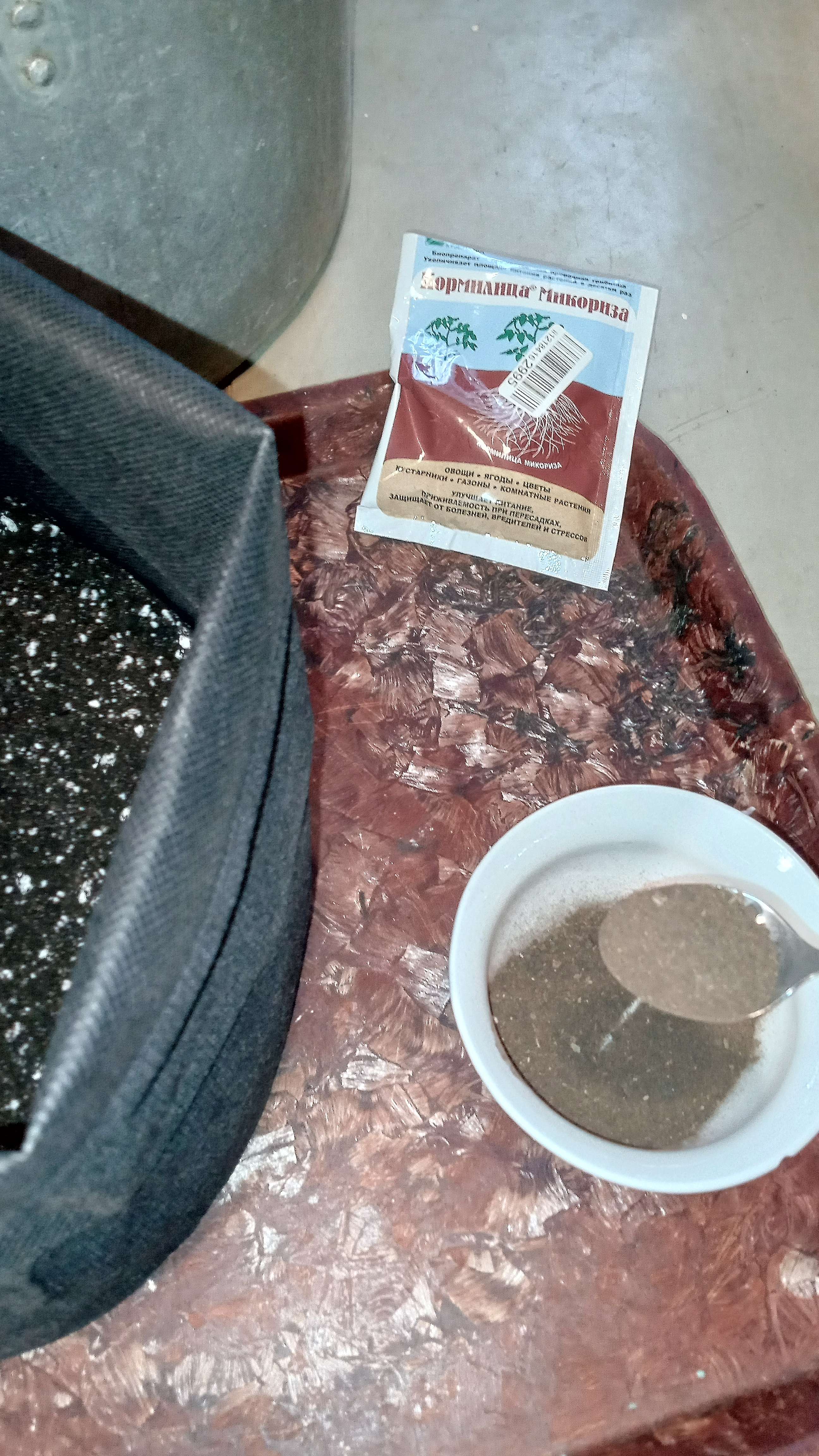 По истечению 2-х суток, проросла, да ещё как! Подготовил воду, и приготовил местечко под солнцем. По 3 чайные ложки микоризы на каждый слой, 2 слоя сделал, каждый слой с пульвика увлажнил. Присыпал семку, пару раз с пульвика и стакан сверху. Вперёд!!!
